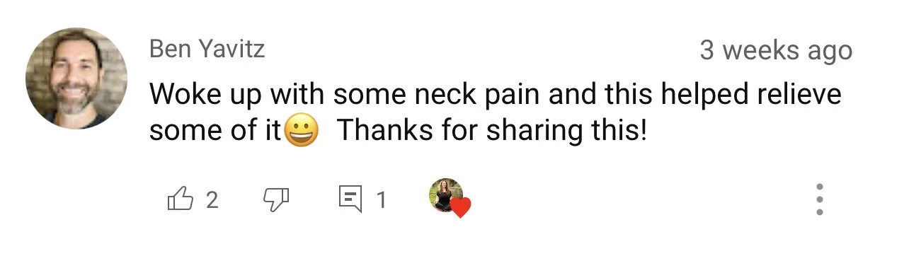 “It has been very beneficial. I did like watched a lot of the neck stretches, and I do feel that definitely help. So all of your videos are like very important, in my opinion. ”